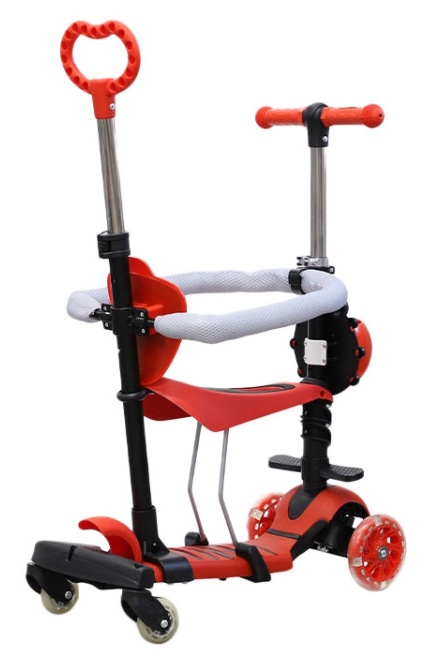 Mânerul pentru părinte este folosit la etapa inițială pentru a ajuta copilul să stăpânească trotineta. Odată ce copilul poate împinge independent cu picioarele, mânerul poate fi îndepărtat. La vârsta de 2-3 ani, poți scoate scaunul pentru părinte pentru ca copilul să învețe să meargă independent. Înălțimea volanului este reglată pentru a se potrivi înălțimii copilului pe măsură ce crește. Scuterul este controlat prin înclinarea volanului la stânga/dreapta.
