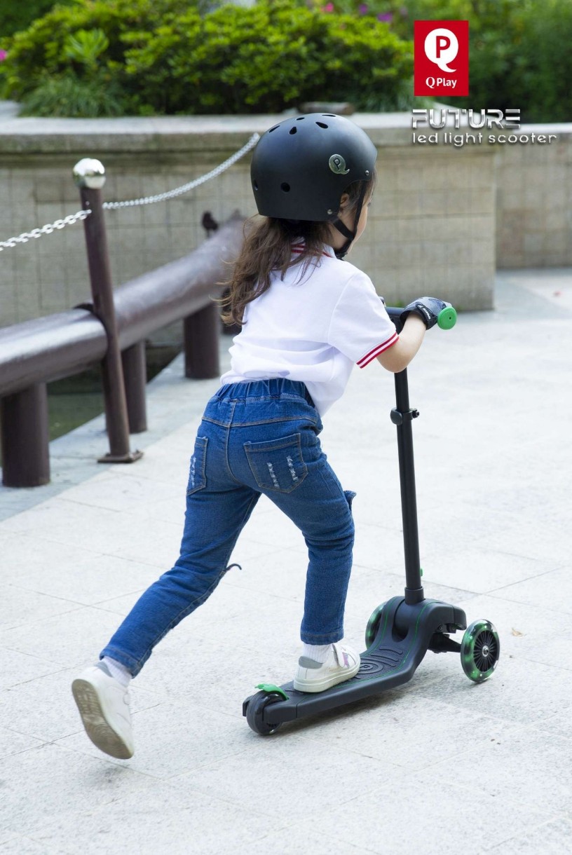 Qplay Future este un produs conceput a fi prima trotineta a micutului tau. Cu un cadru stabil, dar usor, roti de silicon cu aderenta puternica si iluminat LED va anima fiecare iesire alaturi de copil, in timp ce invata sa isi mentina echilibrul in mers. Gratie echiparii cu 3 roti (2 roti fata, 1 roata spate) copilul nu va intampina dificultati atunci cand va incepe sa foloseasca acest produs, iar abilitatile sale de coordonare vor fi starnite astfel pregatindu-se mai usor pentru etapa urmatoare din viata lui – mersul pe doua roti.