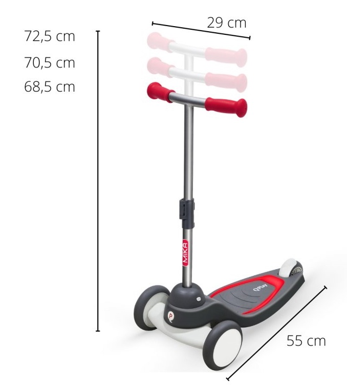 Acest scuter cu trei roți îi ajută și îi învață pe copii să găsească echilibrul. QPlay Mika Scooter este perfect atât acasă, cât și în călătorii - ocupă puțin spațiu. Designul ușor și durabil asigură siguranță și ușurință în utilizare. Un avantaj incontestabil este volanul reglabil pentru inaltimea copilului.