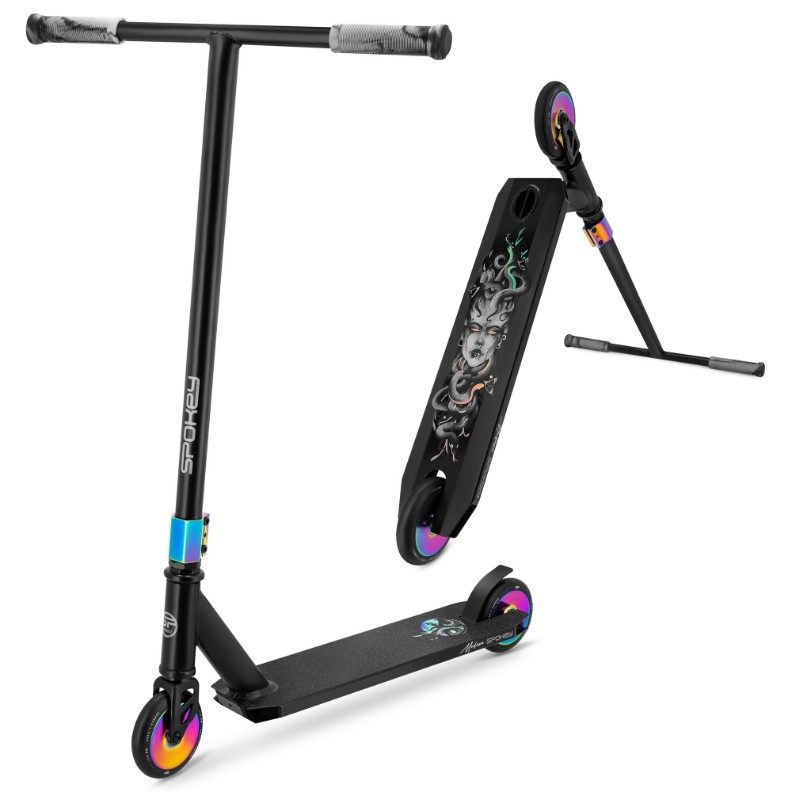 Trotinetă cu structură întărită și greutate redusă – perfectă pentru trick-uri și deplasări dinamice.