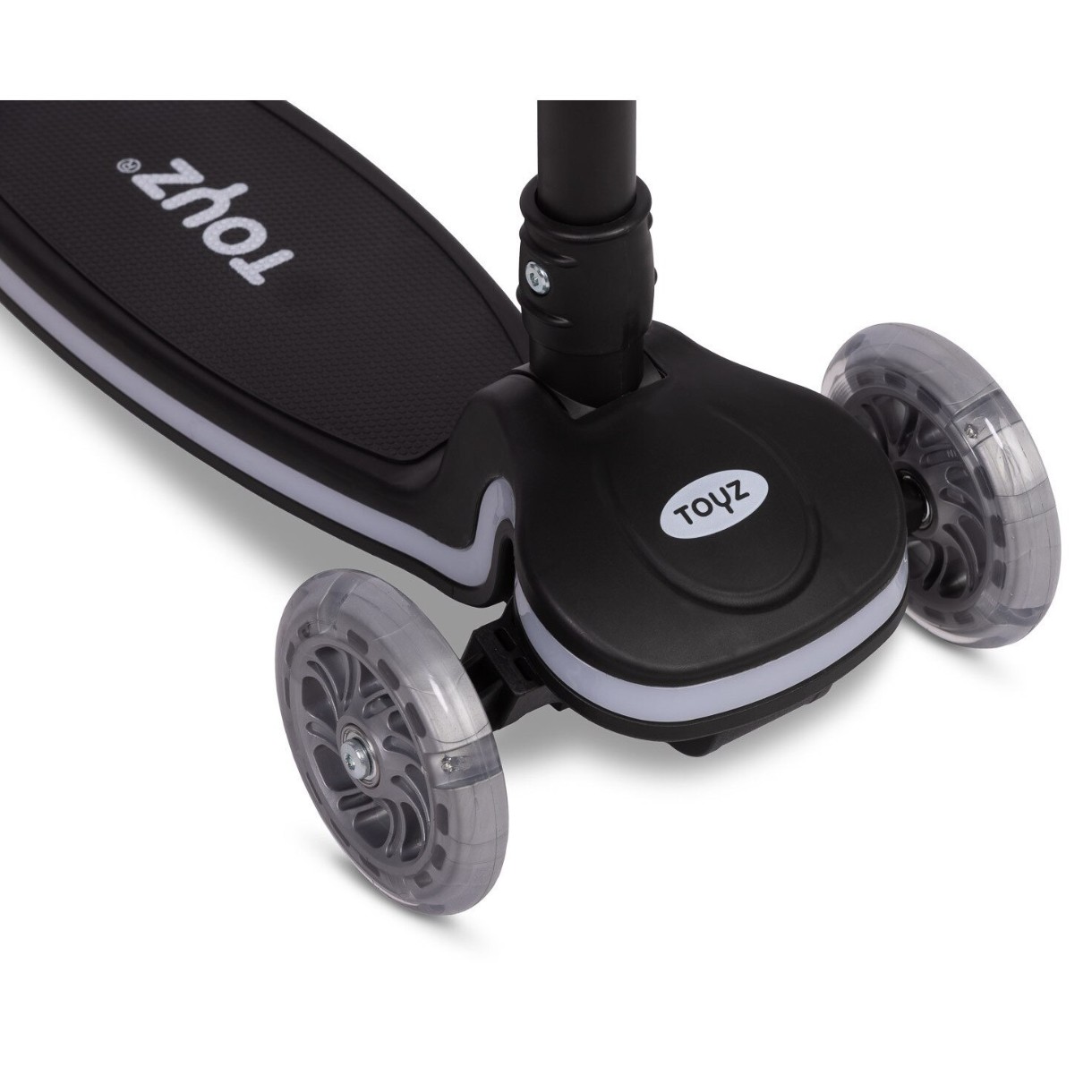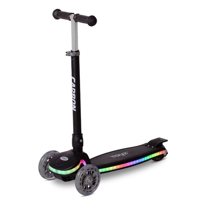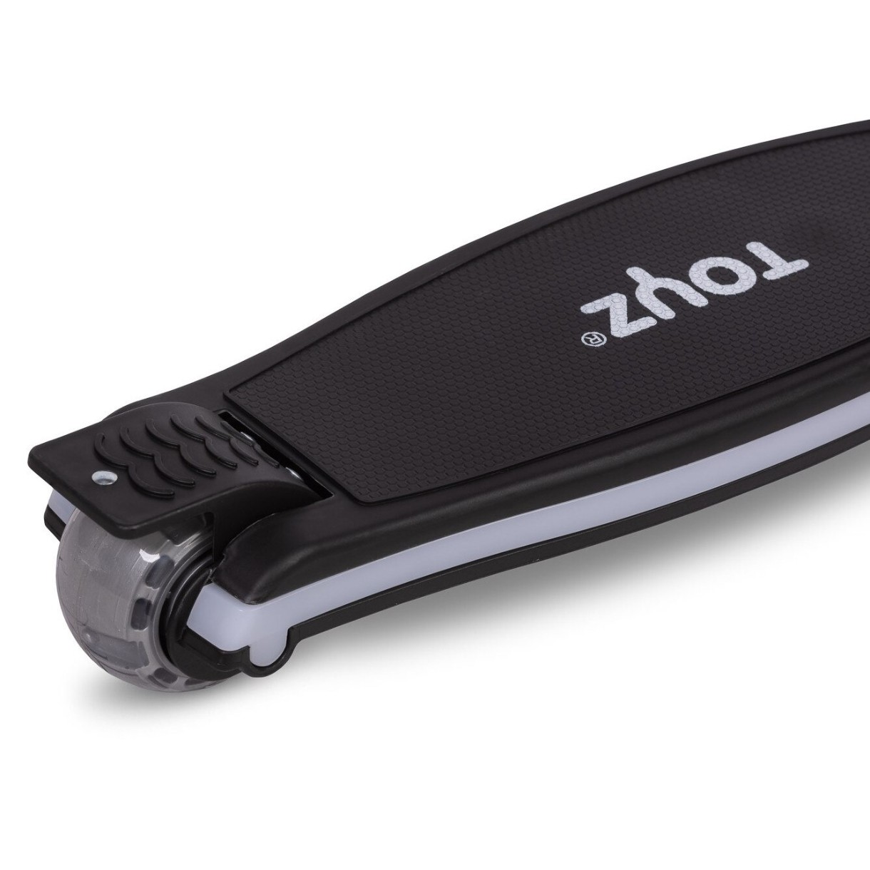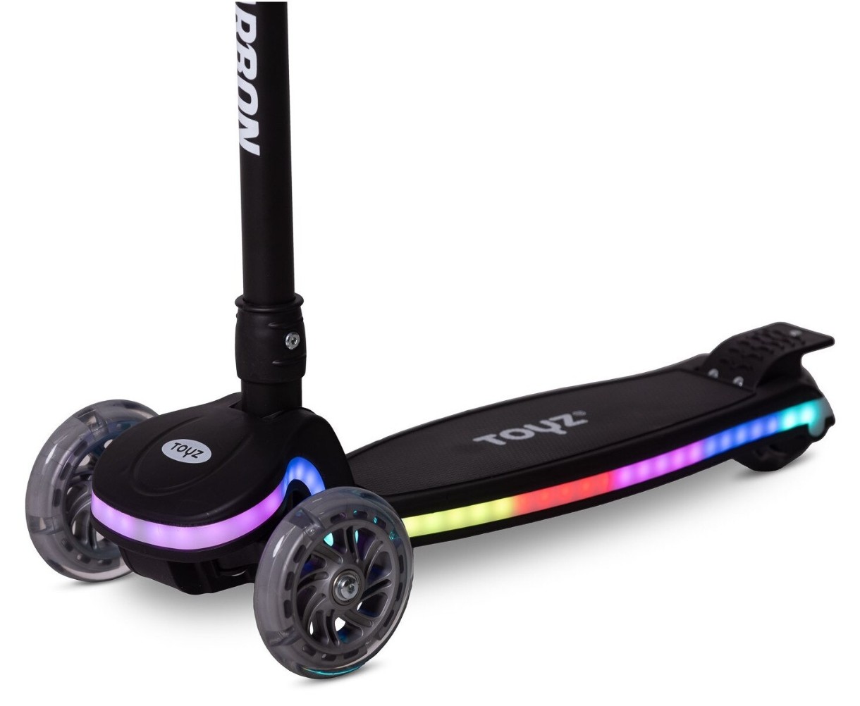 Pentru și mai multă distracție, trotineta este echipată cu roți luminoase intermitente în timpul mișcării, precum și o bandă LED alimentată de baterii. Efectele de lumină puternică cresc vizibilitatea și siguranța, adăugând entuziasm fiecărei plimbări.