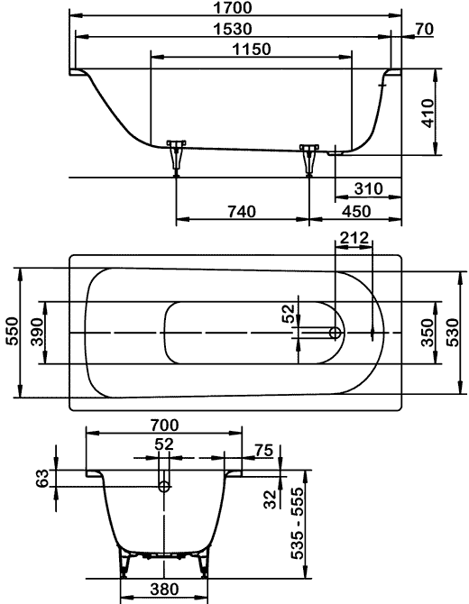 Cadă de baie Kaldewei Saniform Plus 363-1