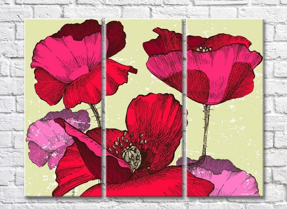 Pictură ArtPoster Scarlet poppy flowers-drawing (500053)