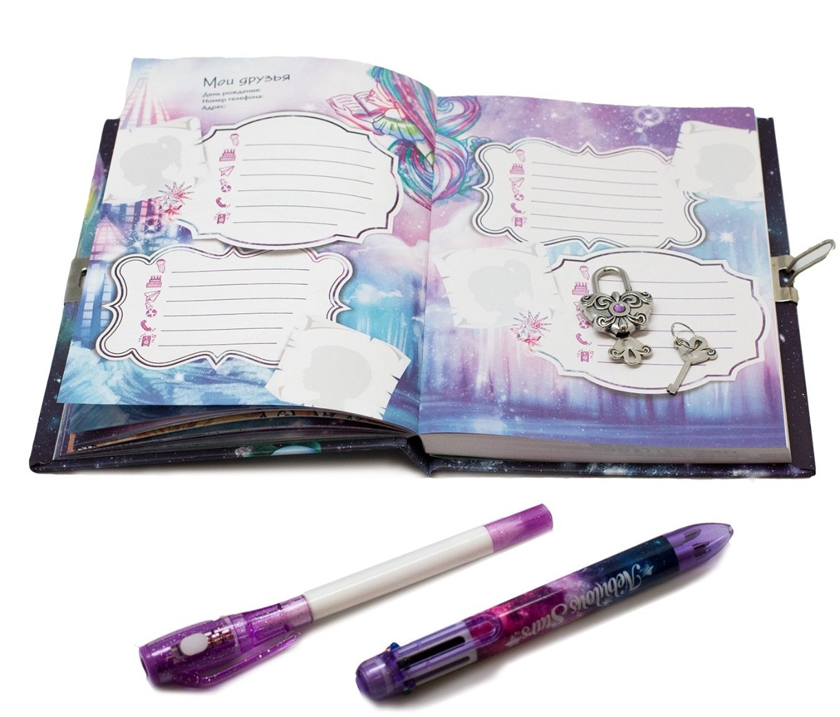 In setjurnal de 200 de pagini, 44 de pagini de sarcini creative interesante, lacat, 2 chei, 6 pixuri color, penele magice invizibile, foaie de autocolant, povestea vedetei lui Isadora