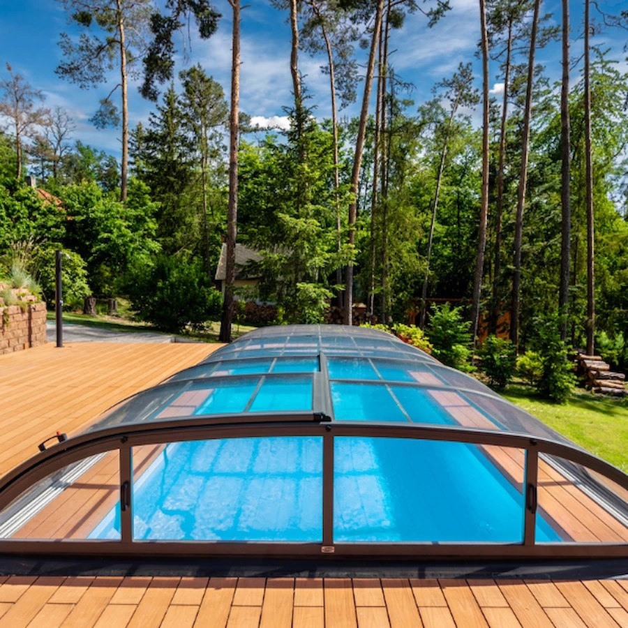 În aceste regiuni, condițiile climatice din lunile de vară sunt adesea capricioase, ceea ce poate afecta confortul odihnei. Utilizarea unui pavilion pentru piscină permite prelungirea sezonului de înot, deoarece oferă posibilitatea de a te bucura de apă chiar și în condiții de vreme schimbătoare. În plus, pavilionul creează un efect de seră, care crește temperatura apei din piscină cu până la 8°C, asigurând o experiență de înot plăcută și de durată.