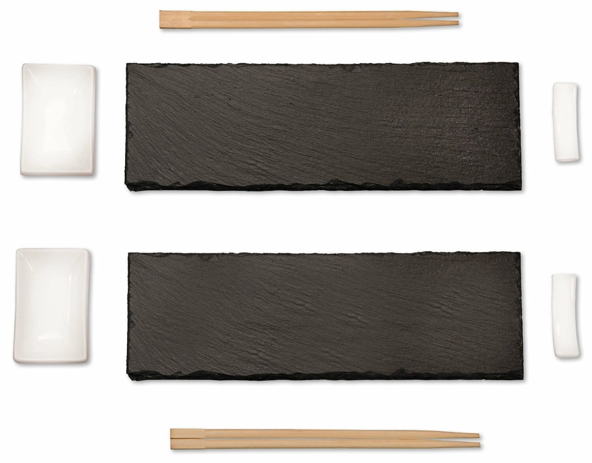 Altele2 farfurii de ardezie 30 x 10 cm, 2 boluri ceramice 8 x 5 cm, 2 perechi de bețe 23 cm, 2 betisoare ceramice, suporturi pentru sushi 6 x 1,5 cm