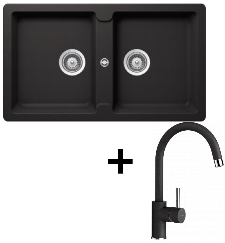 Chiuvetă de bucătărie + baterie Schock Set Element N-200 Onyx + Plutos Onyx