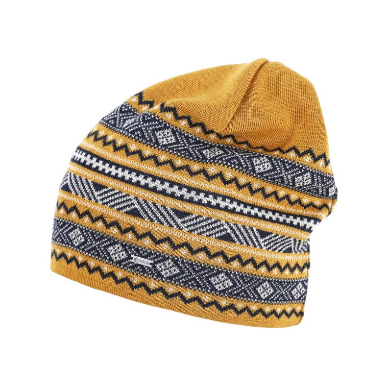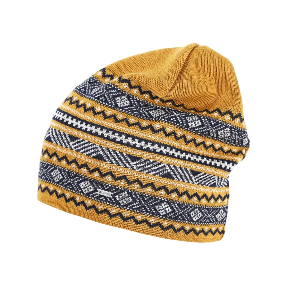 Un model geometric subtil oferă căciulii un aspect nordic elegant. Căciula este tricotată din fibre complet naturale, iar în interior se află o bandă din material hidrofob Polycolon®, care evacuează rapid umiditatea, menține fruntea caldă și nu irită pielea.