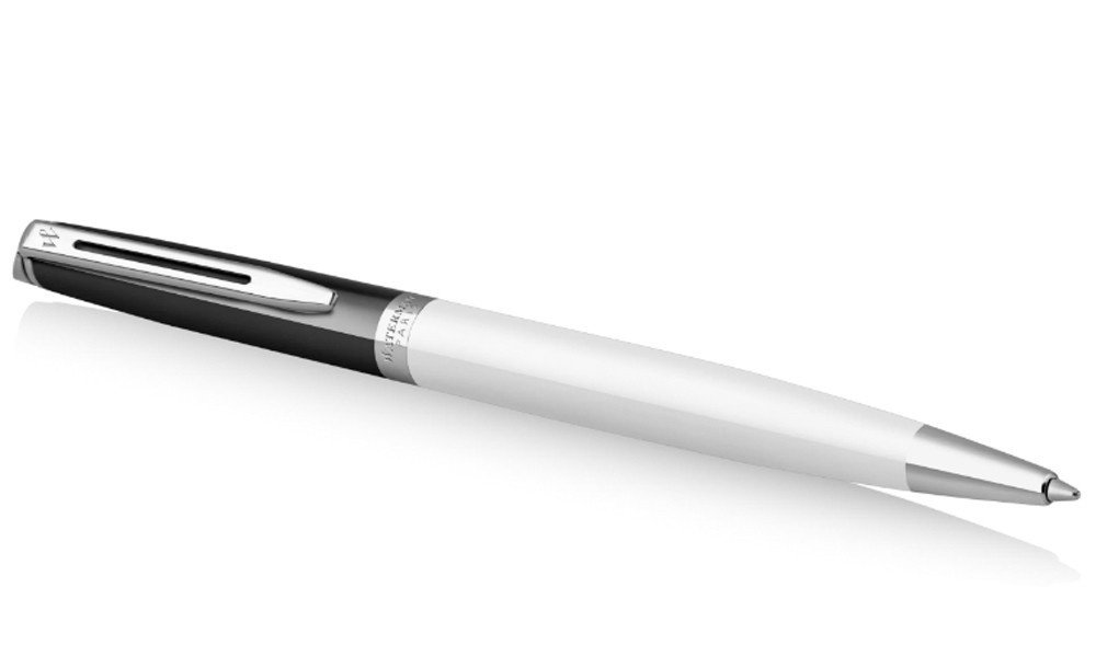 Acest pix modern are un finisaj elegant: capac negru lac și corp alb lac. Aspectul său remarcabil este îmbunătățit de mânerul clasic cu dublă clipsare de la Waterman și de finisajul elegant placat cu paladiu.