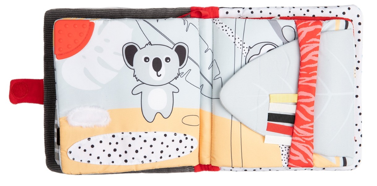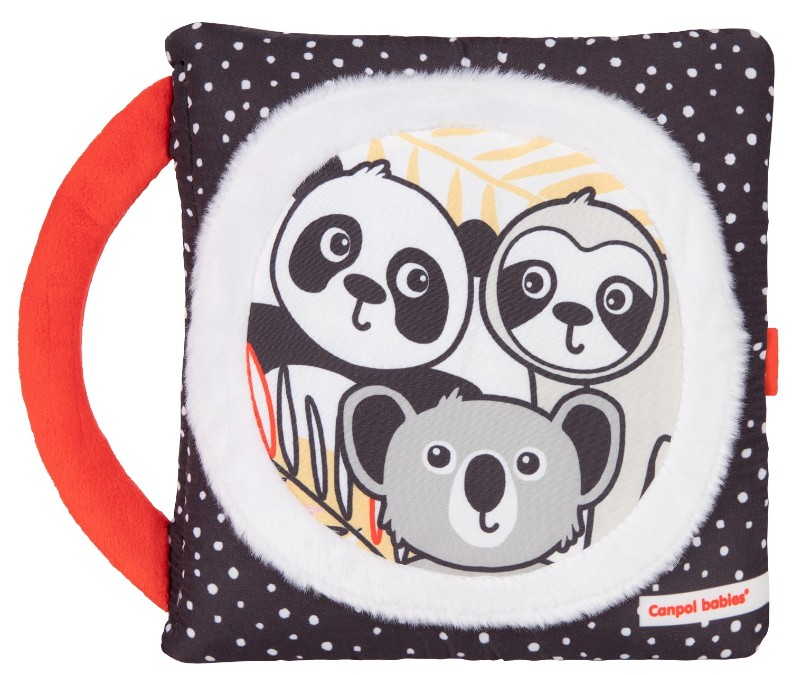 Se potrivește perfect mâinilor copilului mic, sprijinind învățarea apucării.Cartea senzorială pentru bebeluși Canpol este prima lectură perfectă pentru un bebeluș. Stimulează imaginația, creativitatea și curiozitatea copilului, susține dezvoltarea naturală a copilului activând simțul văzului, atingerii și auzului și sprijină antrenarea abilităților manuale și coordonarea ochi-mână. Este, de asemenea, o modalitate excelentă de a insufla micuțului tău dragostea pentru cărți. Cartea prezintă povestea unei zile din viața panda, care este atașată pe panglică sub forma unei mascote. Eroina poate fi „reînviată” mutând-o între pagini, unde o arătăm în diverse situații din timpul zilei – când ia micul dejun, face baie, se întâlnește cu prietenii sau doarme într-un pătuț. Imaginile colorate sunt grozave pentru a povesti și încurajează copilul să numească activitățile de zi cu zi atunci când începe să vorbească. Cartea senzorială are multe elemente care atrag atenția copilului, creează joc nelimitat și sprijină părintele în jocul cu copilul, grație chipurilor drăguțe sub formă de măști. Cartea este prinsă cu velcro și este complet sigură pentru copil. Cartea senzorială Canpol babies este o modalitate excelentă de a petrece timp de calitate cu copilul tău și de a adânci legătura părinte-copil. Cartea cu activități senzoriale Canpol babies BabiesBoo va fi jucăria preferată a bebelușului tău. Cărțile senzoriale sunt recomandate atât de kinetoterapeuți, cât și de psihologii copii pentru dezvoltarea corectă a simțurilor copilului și exerciții fizice pentru sugari și copii mai mari.