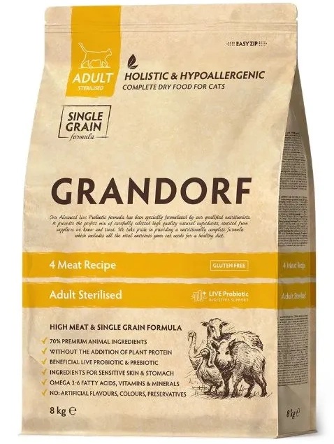 Hrană uscată pentru pisici Grandorf Adult Sterilised 4 Meat 8kg