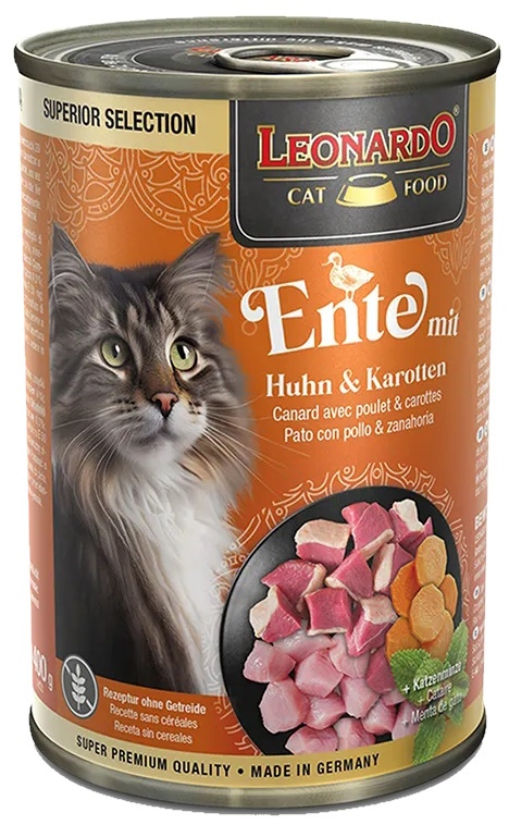 Hrană umedă pentru pisici Leonardo Duck & Chicken & Carrots 400g