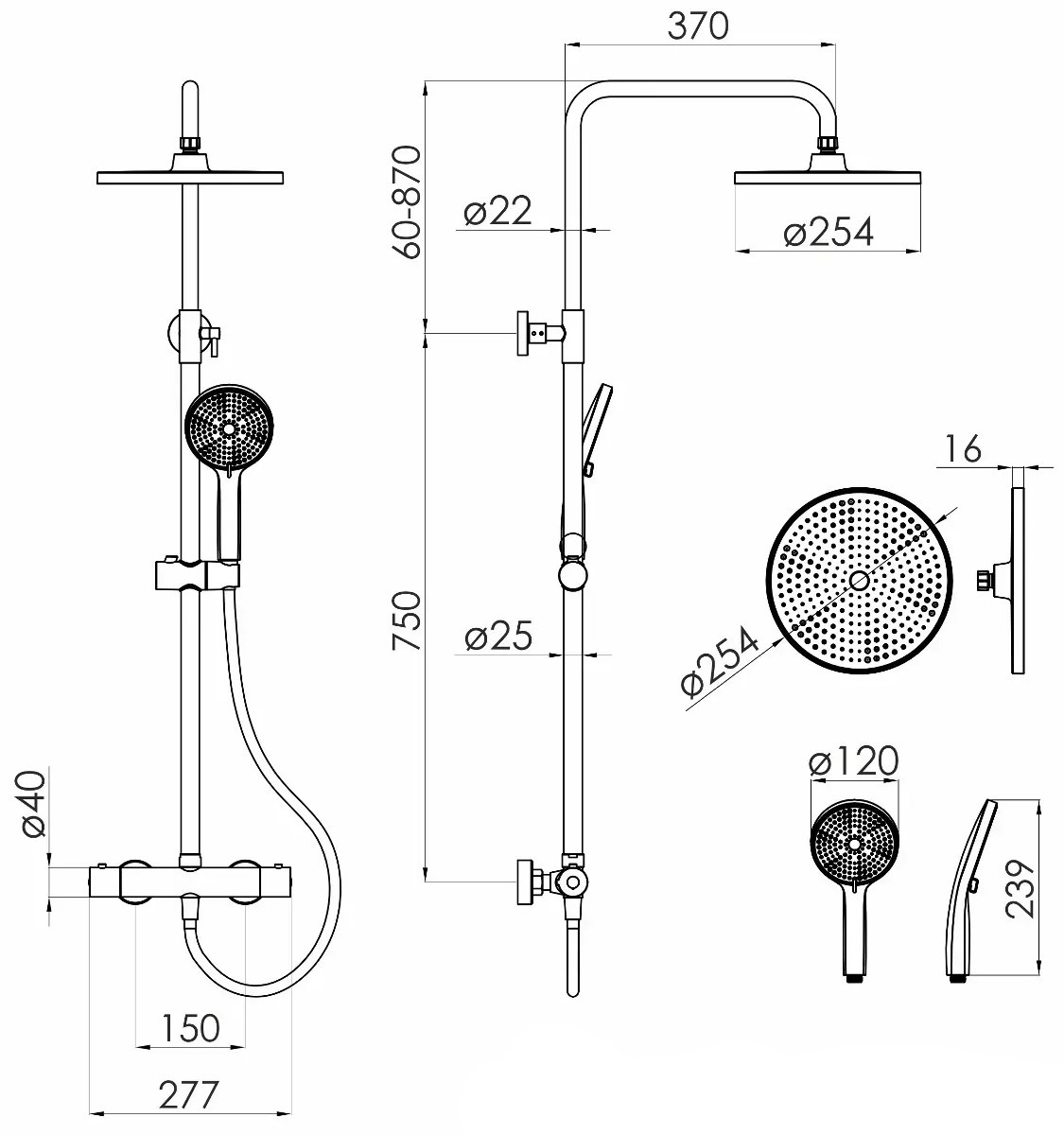 Diametru disc de dus254 mm