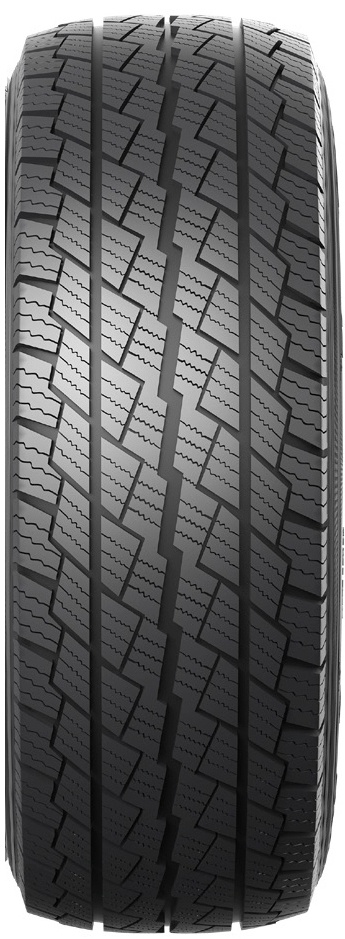 Anvelopa comercială de iarnă Kpatos FM809 este concepută pentru utilizare intensivă și pe termen lung în regiuni cu climă rece. Pe orice drum înzăpezit și înghețat, are proprietăți de aderență stabile, control confortabil și eficiență de frânare. Modelul benzii de rulare este format din patru nervuri longitudinale late, formate din blocuri strâns distanțate. Acest design oferă o rezistență redusă la rulare, stabilitate direcțională și control confortabil. În același timp, marginile multidirecționale alungite ale blocurilor și canelura în zig-zag exact în centru păstrează majoritatea acestor proprietăți pe zăpadă. Eficiența benzii de rulare pe suprafețe umede și înghețate este asigurată de lamele tăiate strâns, cu muchii ascuțite în formă de ferăstrău.