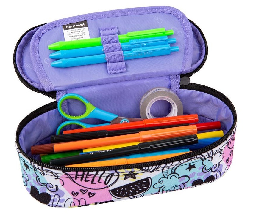Penarul are un compartiment principal mare. În interior există o clapă cu organizator pentru pixuri și un buzunar din plasă cu fermoar - va exista un loc pentru toate lucrurile necesare.