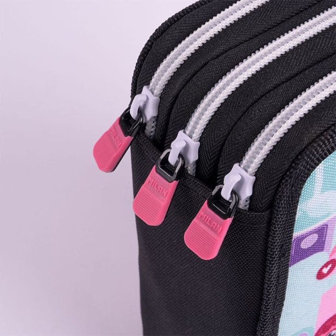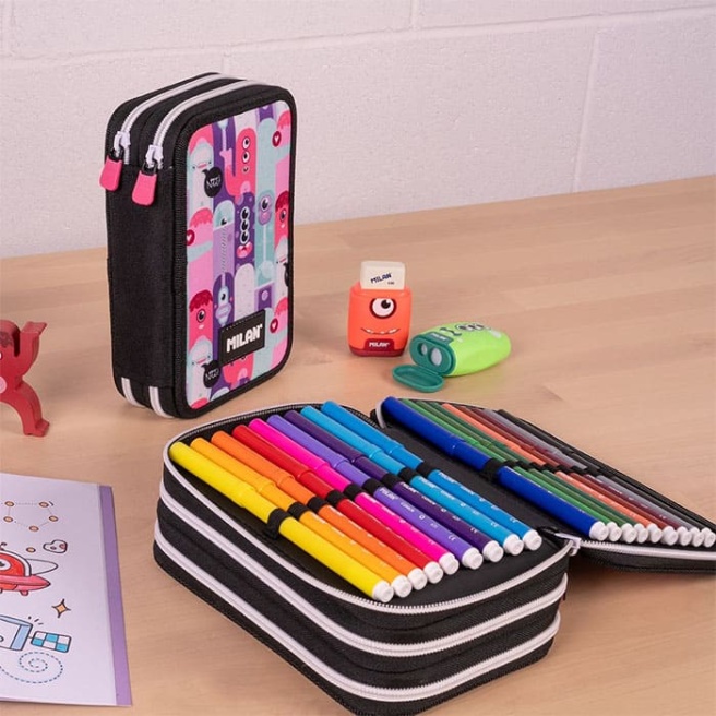 Penarul cu trei compartimente păstrează rechizitele școlare organizate și la îndemână.