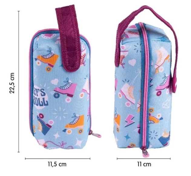 Seria specială Roller 2 este o colecție cu un print inspirat de patinele retro cu patru roți. Imprimeul este creat într-o paletă de tonuri de albastru, muștar și roz. Compoziția țesăturii: poliester. Dimensiuni: 22,5 x 11,5 x 11 cm.