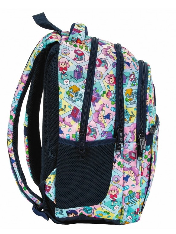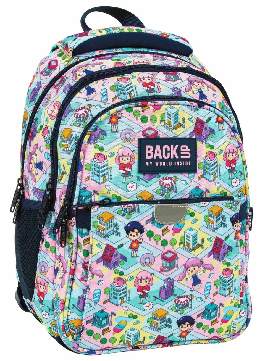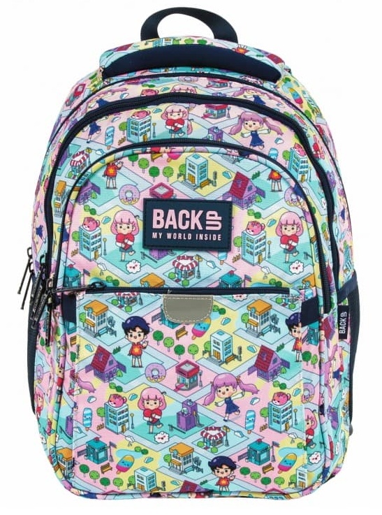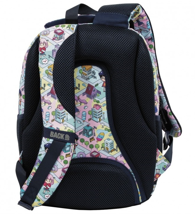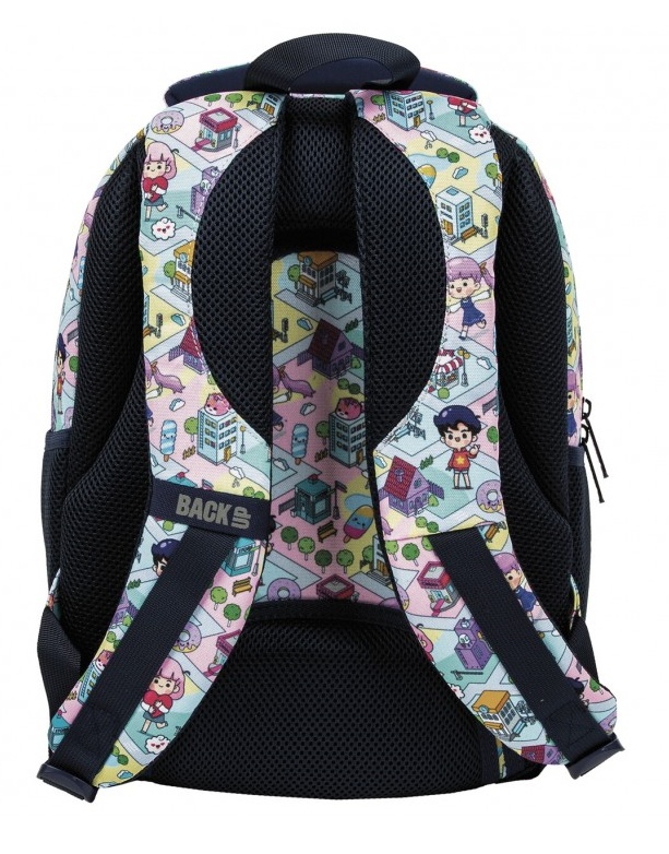 Lumea jocului pastel s-a transferat direct în rucsacul BackUP! Personaje colorate călătoresc printr-un tărâm amuzant în miniatură, întâlnind gogoși dulci, înghețată colorată și animale drăguțe pe parcurs. Acest lucru, combinat cu detaliile bleumarin, creează o compoziție unică, dinamică. Rucsacul din colectia Doll Game a fost creat pentru cei mai tineri fani ai stilului dulce kawaii. Potrivit pentru statura mică a unui copil, acesta este rucsacul perfect pentru un elev de clasa întâi.