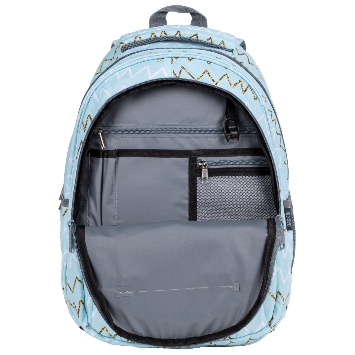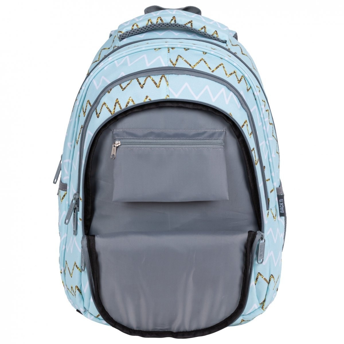 Un rucsac de școală încăpător și funcțional va atrage toată lumea. Rucsacul se caracterizează printr-o manoperă atentă și un model interesant cu șiruri. Materialul din care este cusut rucsacul este rezistent la apa si durabil. Rucsacul este incapator, are 3 compartimente mari si un mic buzunar frontal. Într-unul dintre compartimente se află o filă mare pentru un laptop și o tabletă; cel de-al doilea compartiment încăpător găzduiește cu ușurință și formatul A4 și are un buzunar cu fermoar; al treilea are un organizator la îndemână cu carabină. Pe laterale, rucsacul are două buzunare deschise pentru o sticlă de apă sau o sticlă de apă. Toate fermoarele sunt finisate cu extractoare mari la îndemână. Spatele rucsacului este bine rigidizat și acoperit cu un material respirabil. Bretelele de umăr sunt largi, căptușite moale și acoperite cu un material respirabil pe partea inferioară. De asemenea, are o curea de piept reglabilă care îmbunătățește confortul transportului de sarcini mai grele. Partea inferioară a rucsacului este întărită cu spumă. În partea de sus, rucsacul are un mâner de transport căptușit ușor și unul suplimentar pentru agățat. Are reflectoare discrete care vor asigura siguranta pe drum. Buzunarul frontal întărit cu spumă protejează conținutul de deteriorare.