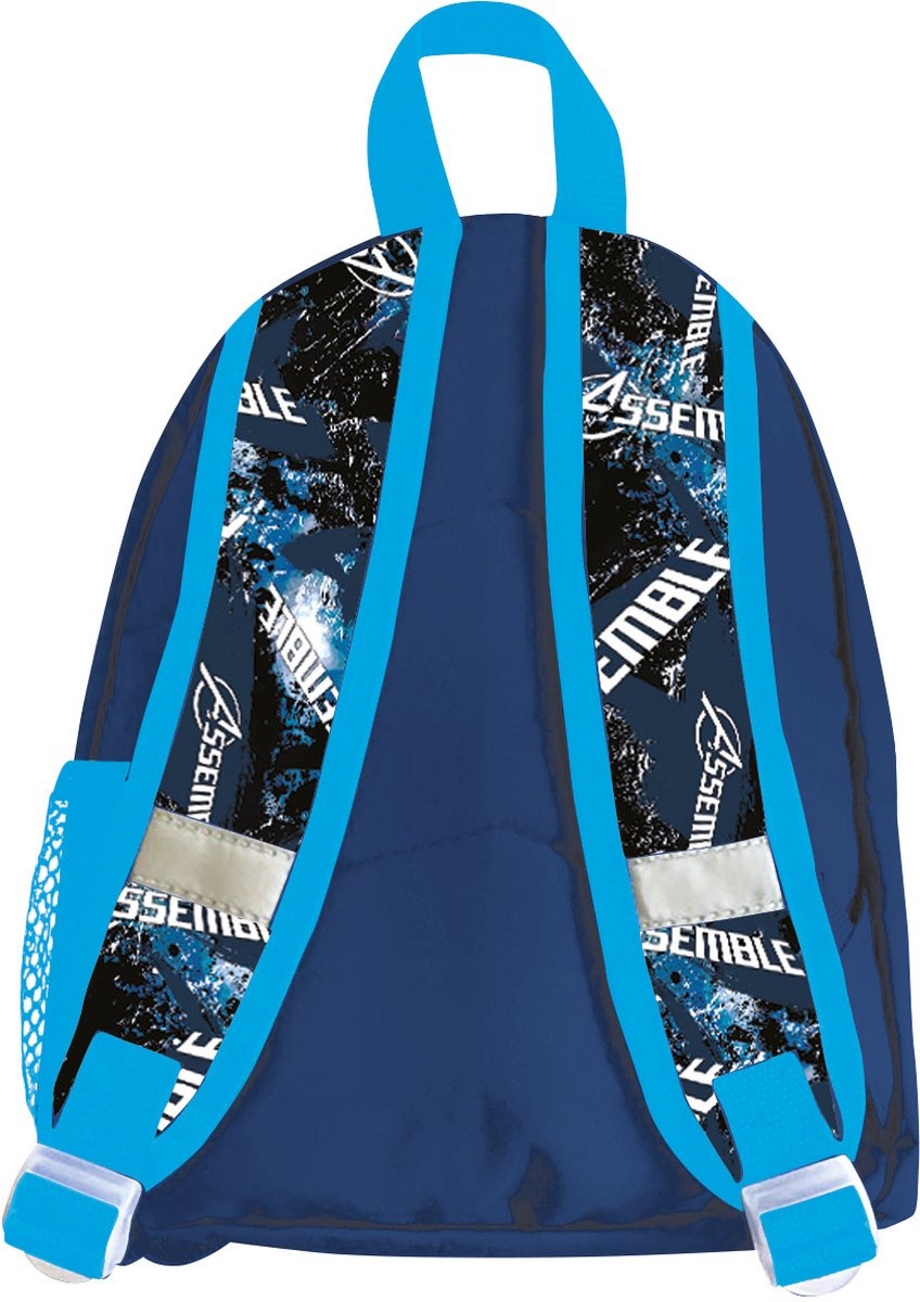 Ghiozdanul are un compartiment principal mare, un buzunar frontal, ce se inchid cu fermoare, 2 laterale din plasa și bretele reglabile.