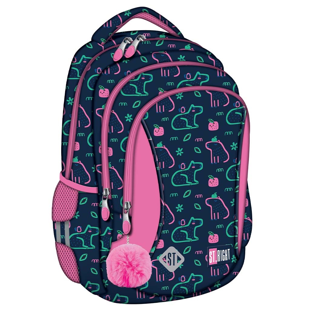 Ghiozdanul are 1 compartiment principal si 2 compartimente frontale cu fermoar.