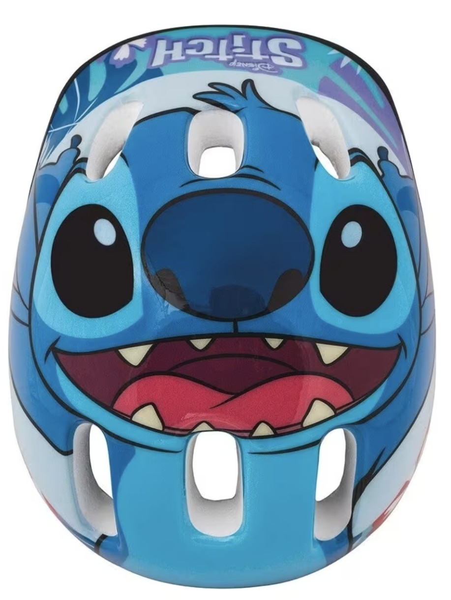 Soluția ideală pentru copiii care adoră să se joace în aer liber. Casca Stitch nu doar că oferă un plus de stil, dar asigură și protecție în cazul unor posibile accidente. Exteriorul este realizat din strat de PVC colorat, cu design, iar interiorul din polistiren de înaltă calitate pentru siguranță maximă.Casca este echipată cu un mecanism de ajustare, care permite reglarea exactă pe capul copilului. Sistemul de ventilație, prin orificiile speciale, garantează o circulație optimă a aerului și confort în timpul purtării.Recomandată pentru utilizatorii de biciclete, trotinete și role.