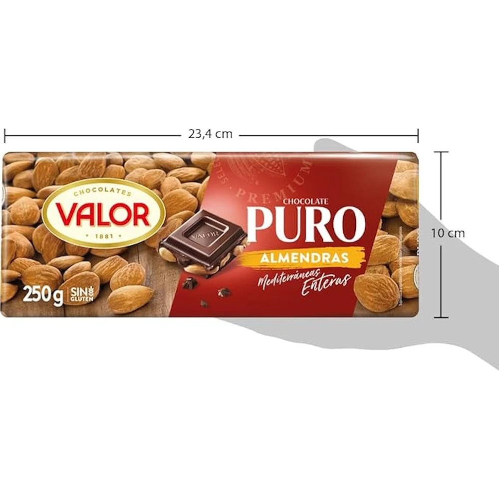 Ciocolata pură cu migdale este cea mai emblematică și echilibrată ciocolată de la Valor, deoarece combină ciocolata rafinată cu un gust și o aromă unică, întotdeauna migdale mediteraneene întregi și experiența maeștrilor ciocolatieri.