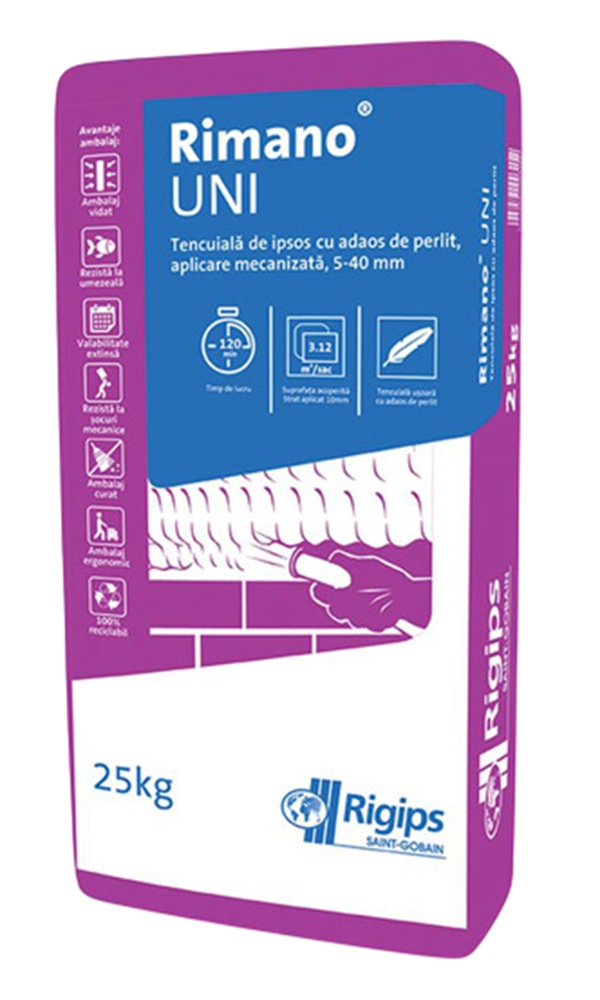 Email Rigips Rimano UNI 25 kg este destinată finisării interioare a pereților și tavanelor. Se utilizează pentru nivelarea și pregătirea suprafețelor înainte de vopsire, aplicarea tapetului sau alte finisaje decorative. Are o plasticitate ridicată, se aplică ușor și formează o suprafață uniformă și netedă. Potrivită pentru lucrul pe baze din beton, cărămidă și mortar ciment-nisip, asigurând un finisaj durabil și de calitate.