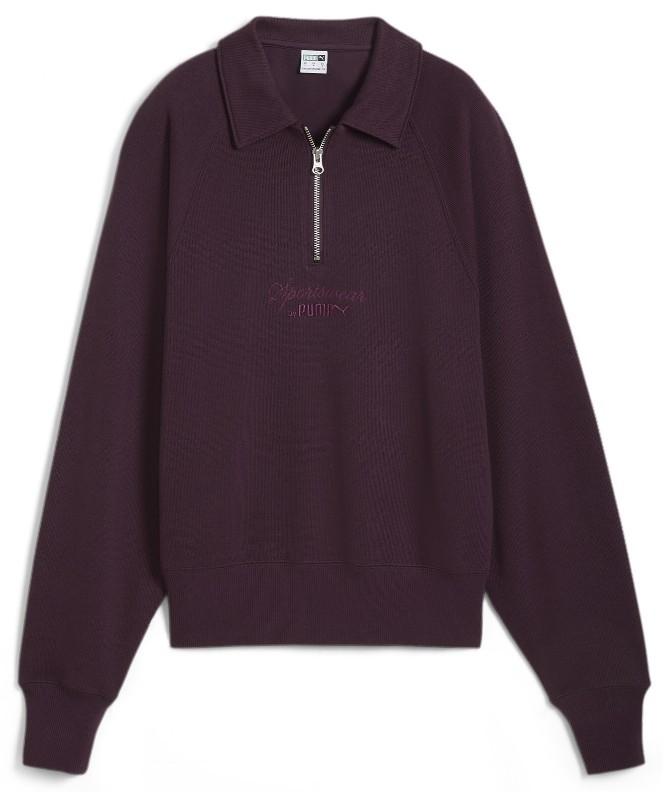 Hanorac damă Puma Classics+ Half Zip Polo Crew Midnight Plum, s.S