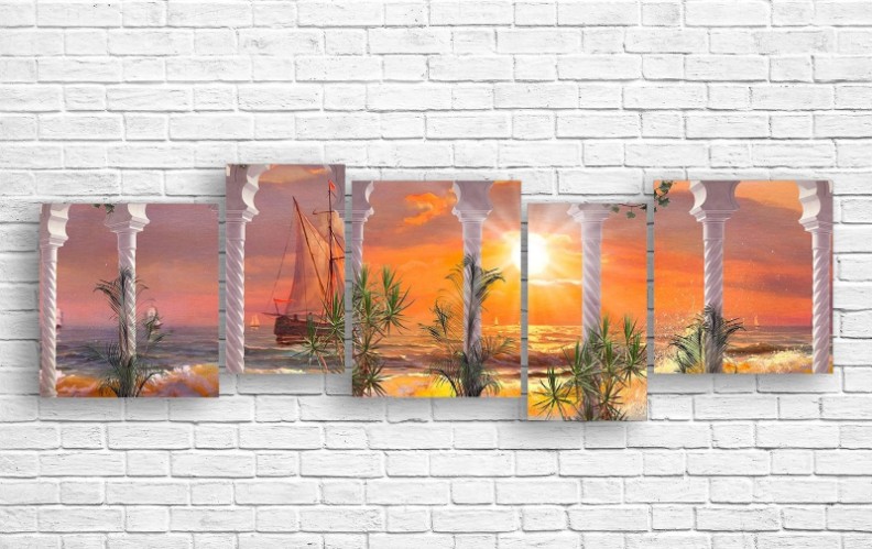 Pictură ArtDesign Sailboat and sunset 199x64cm (F-10184)