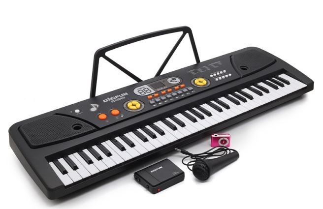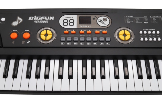 Sintetizatorul BF 730C este un pian electronic multifuncțional cu 61 de clape, ideal pentru muzicienii în devenire. Echipat cu un microfon, afișaj LED, funcție de înregistrare și redare, acesta le permite copiilor nu numai să cânte, ci și să înregistreze propriile compoziții. Este un instrument excelent pentru dezvoltarea creativității, a simțului ritmului și a urechii muzicale.