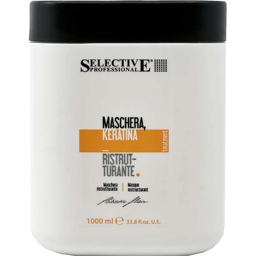 Masca pentru păr Selective Professional Artistic Flair Keratin Mask 1000 ml — tratament intensiv pentru refacerea, întărirea și protecția părului cu keratină.