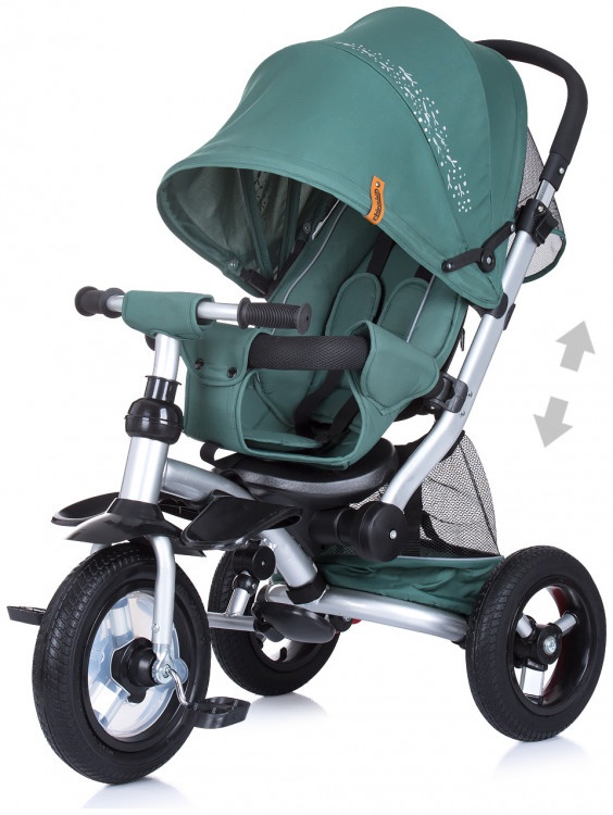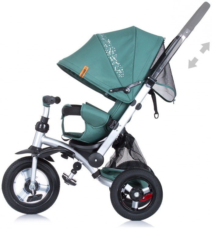 Copertina, mânerul parental și protecția barei de protecție sunt detașabile, astfel încât tricicla se transformă într-o triciclă pentru un copil mai mare; - Scaunul este echipat cu o bara de protecție; - Maner parental reglabil pe inaltime; - Poziția multi-înclinată a spătarului, inclusiv complet plat; - suport pentru picioare pliabil și mobil; - Suport picioare fata;