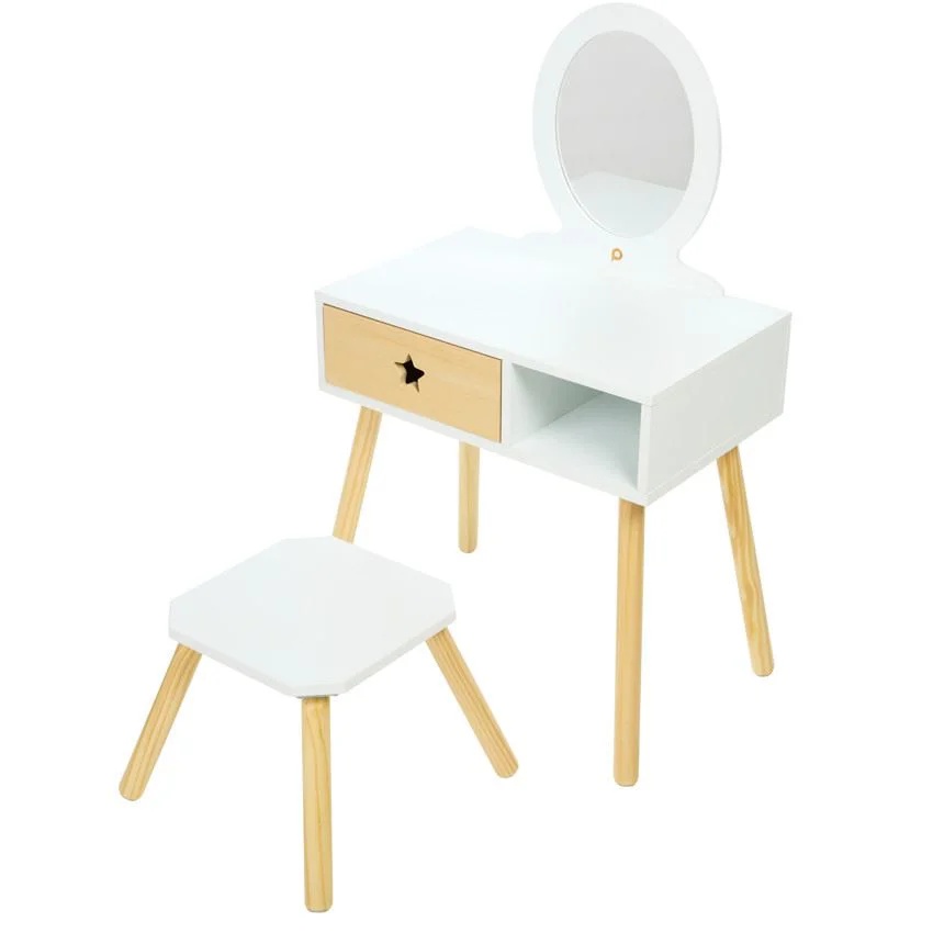 Măsuță de toaletă pentru copii cu oglindă și taburet – elegantă și funcțională | Ideală pentru camera micuței tale