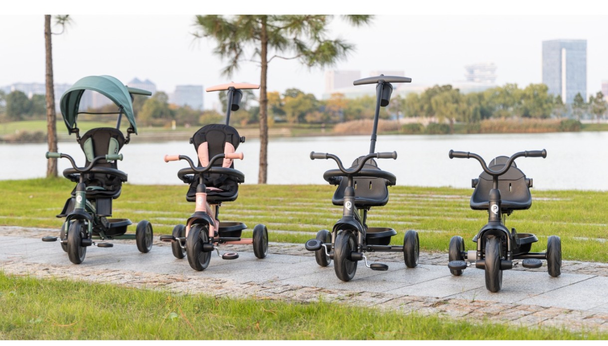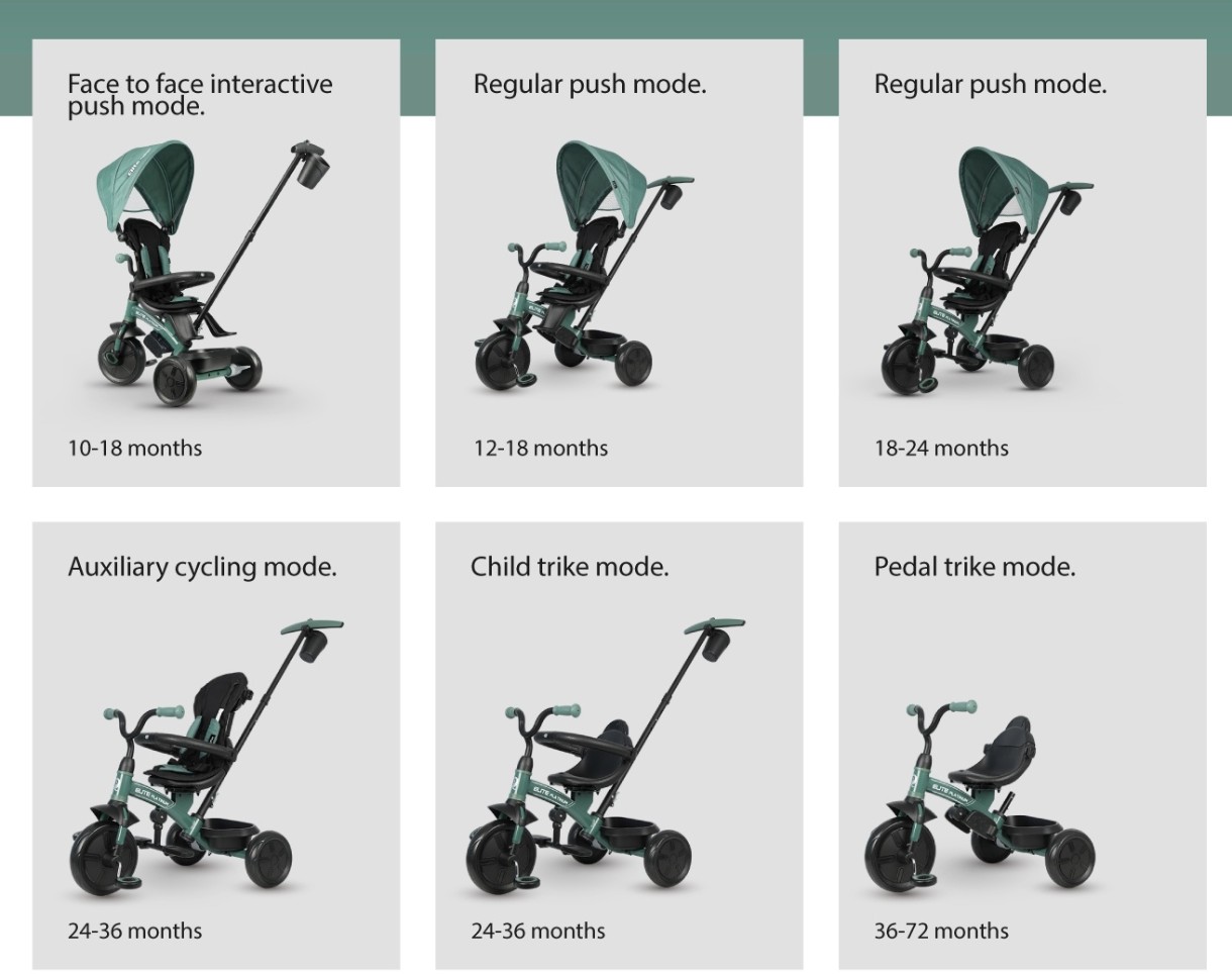 Tricicleta pentru copii QPlay Elite Platinum 6-in-1 se adapteaza perfect nevoilor copilului tau cu sase moduri de utilizare.