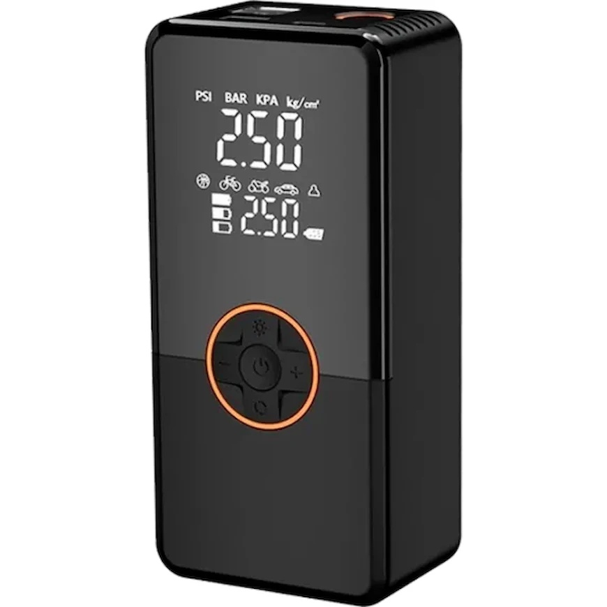 Compresor încorporat pentru umflarea anvelopelor Modelul este echipat cu un compresor de înaltă presiune (până la 8 bari), care permite umflarea rapidă a anvelopelor de automobile, biciclete sau motociclete, precum și a produselor gonflabile. Manometrul de pe carcasă ajută la controlul presiunii și la evitarea supraumflării.