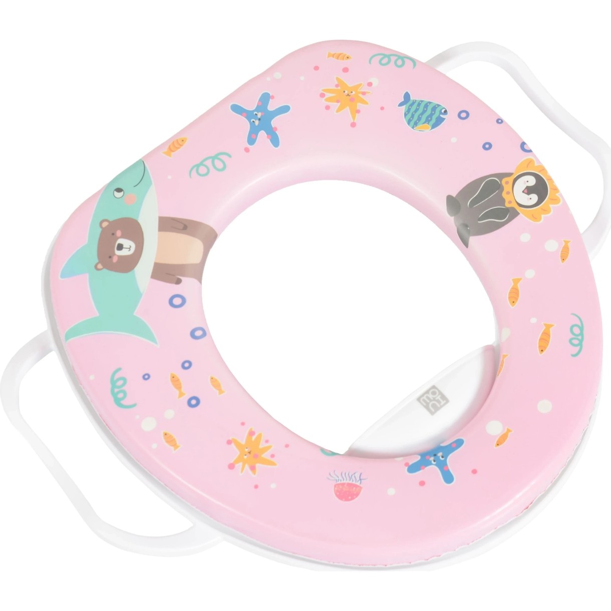 Designul vesel și atractiv Moni Wiggle transformă procesul de obișnuire cu toaleta într-o experiență pozitivă pentru copil. Scaunul se montează ușor pe majoritatea toaletelor standard, se scoate rapid și se curăță cu ușurință.