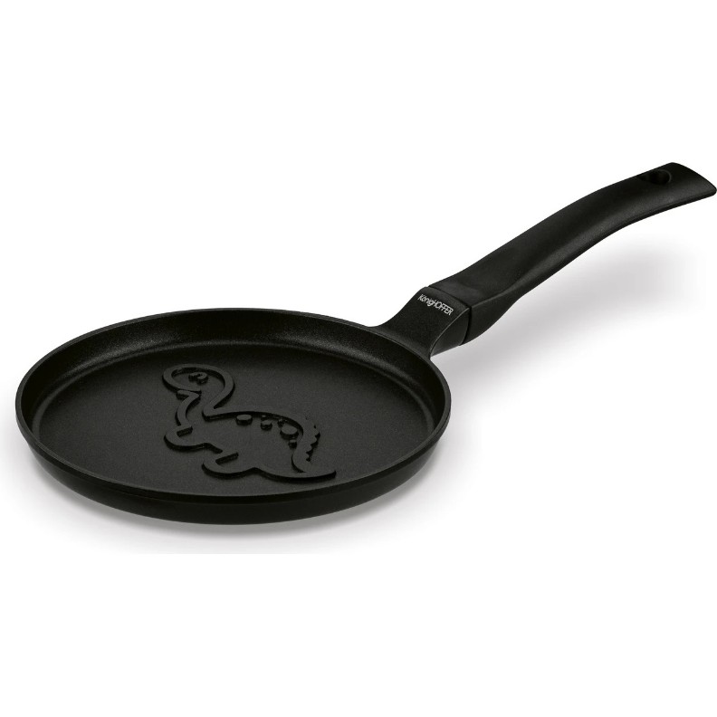 Tigaia prezentată pentru inducție și gaz va face ca fiecare clătită să aibă un model delicios și optimist de dinozaur. Este o modalitate bună de a diversifica mesele de acasă și de a încuraja copilul să mănânce. Realizarea mânerului din bakelită face ca acesta să se încălzească mai lent, iar tu vei evita mai ușor arsurile la mâini!
