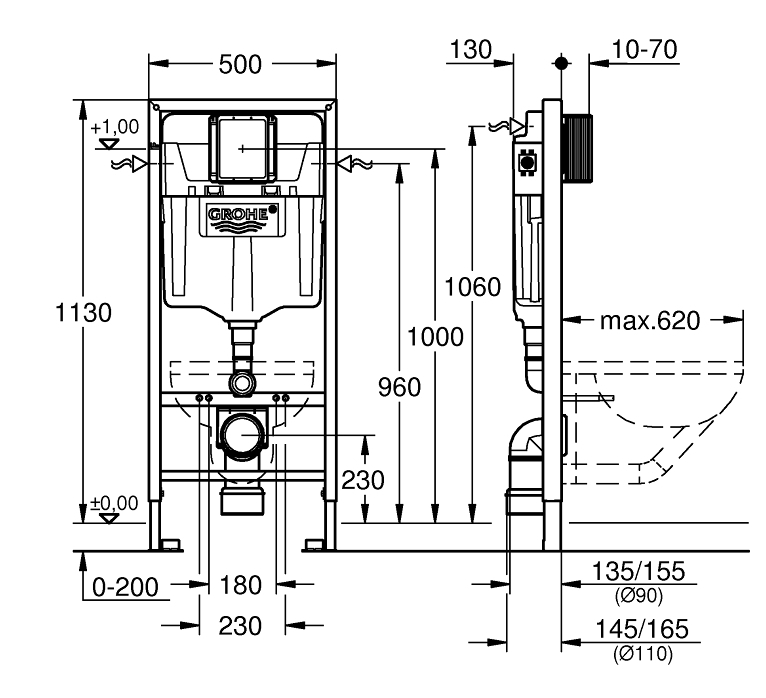 Rezervor WC îngropat cu cadru Grohe SL + Skate Cosmo Crom (38528001)