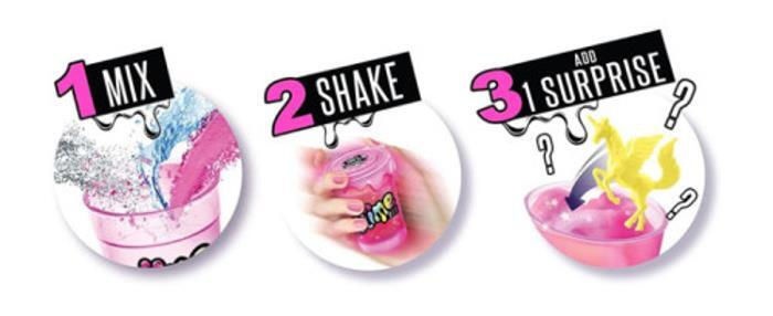 Slime DIY 100% original, fără murdărie, într-o valiză portabilă pentru distracție maximă. Pur și simplu adaugă sclipici, confetti și pulbere de slime în shaker, adaugă apă și amestecă pentru a crea cel mai colorat slime. Adaugă autocolante pentru a personaliza valiza ta.