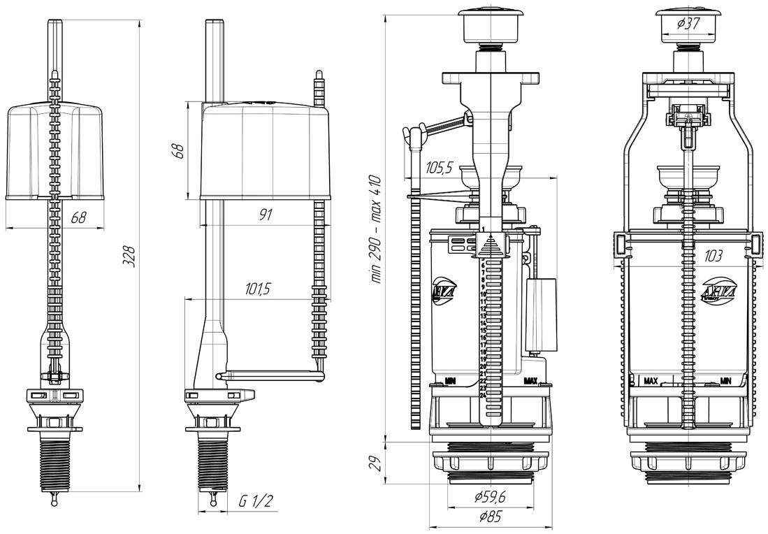 Înălțimea minimă de montare290 mm