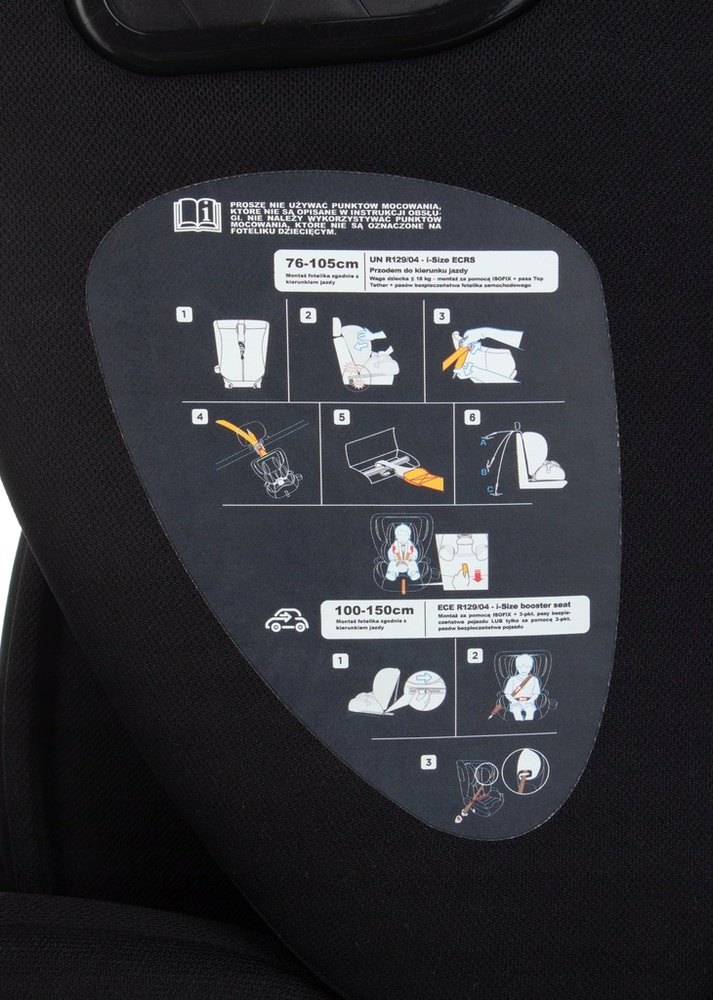 Fixarea stabilă minimizează riscul instalării incorecte, ceea ce se traduce prin siguranță maximă în timpul călătoriei. Centură Top Tether - Crește stabilitatea scaunului în vehicul, oferind protecție suplimentară în caz de frânare bruscă sau coliziune.