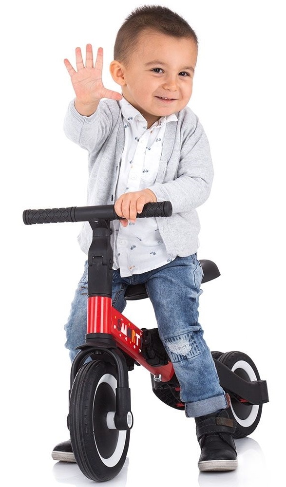 Se transformă cu ușurință de la un triciclu într-un run bike folosind un sistem de mecanism de prindere.