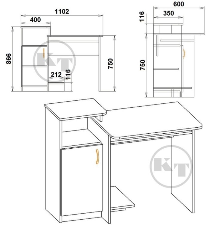 Masa de birou Компанит СКМ-2 Atelie Deschis