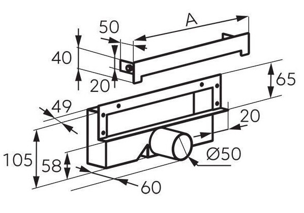 racord: Ø50 mm, adâncime de instalare: 58 mm