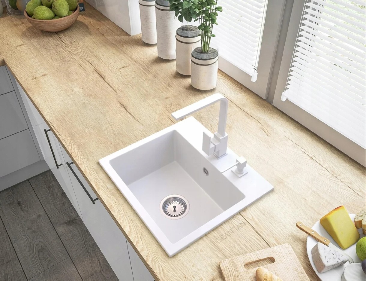 Bateria de bucătărie Granitan este un robinet modern și practic, proiectat pentru confort în utilizarea zilnică. Are un corp robust din alamă și un finisaj rezistent la pete și temperaturi ridicate. Robinetul este echipat cu un gât pivotant la 360°, oferind libertate maximă în zona chiuvetei pentru spălare și umplerea recipientelor mari.