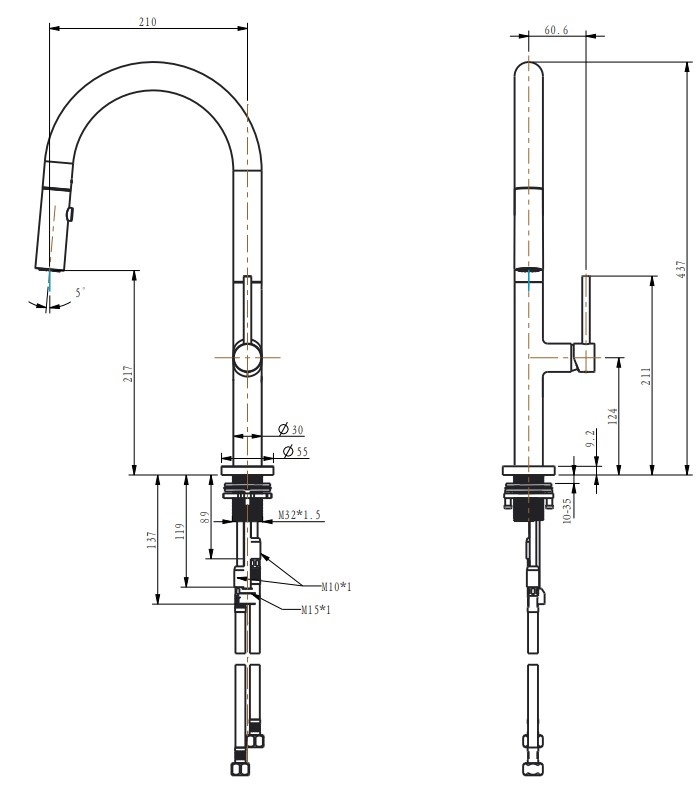 Înălțime pipă437 mm