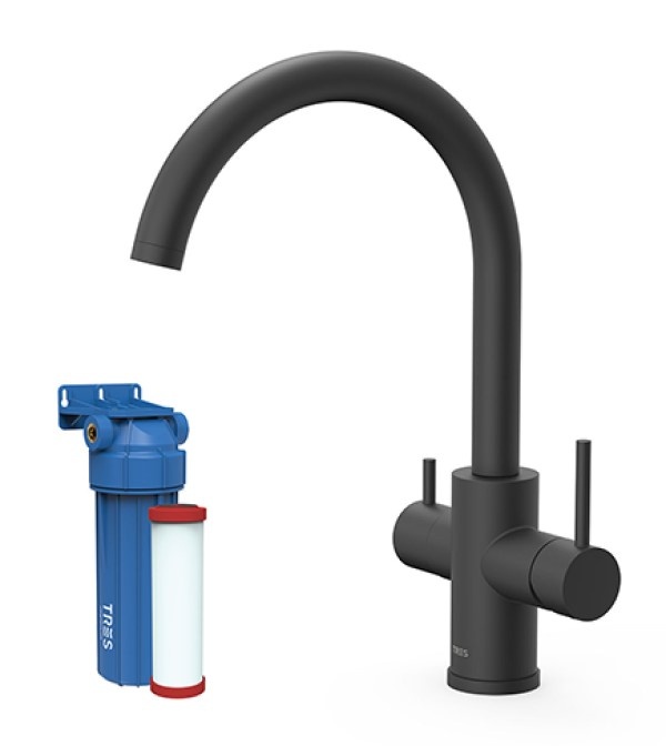 Baterie combinată TRES KITCHENS cu conexiune pentru filtru, în finisaj cromat – apă de la robinet și apă filtrată direct dintr-un singur robinet de bucătărie.