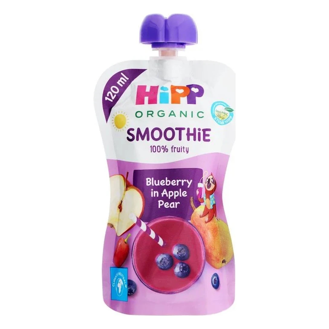 HiPP Smoothie este o gustare ecologică destinată copiilor de peste 1 an, ideală ca desert sau gustare, servită ca atare sau împreună cu pâine.