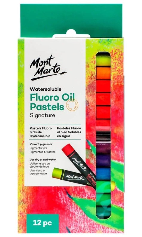 Cretă pentru desen Mont Marte Watersoluble Fluoro Oil Pastels 12pcs (MMPT0037)